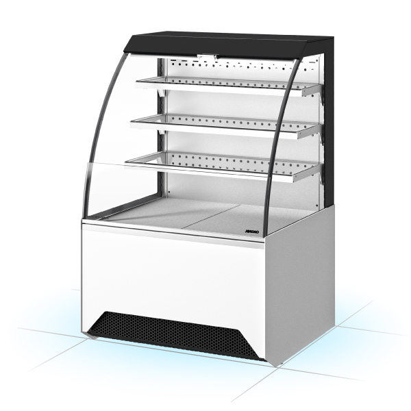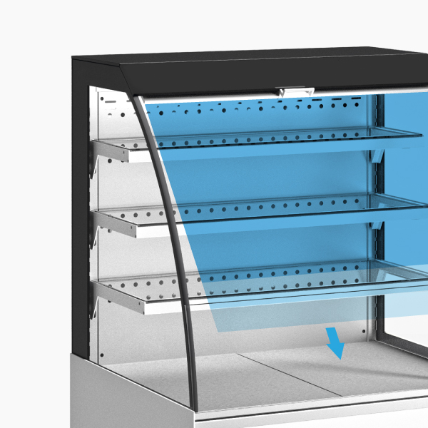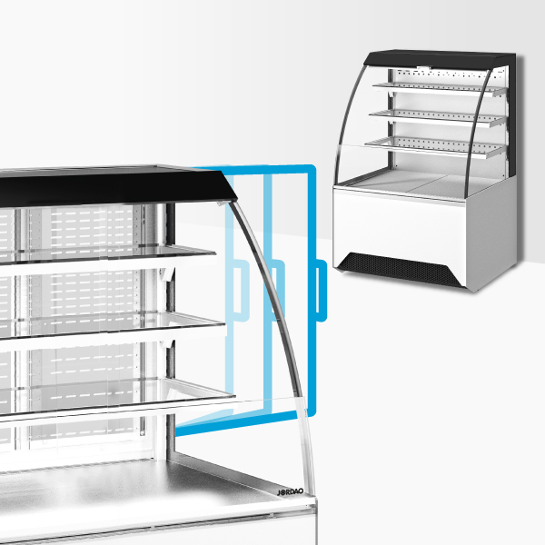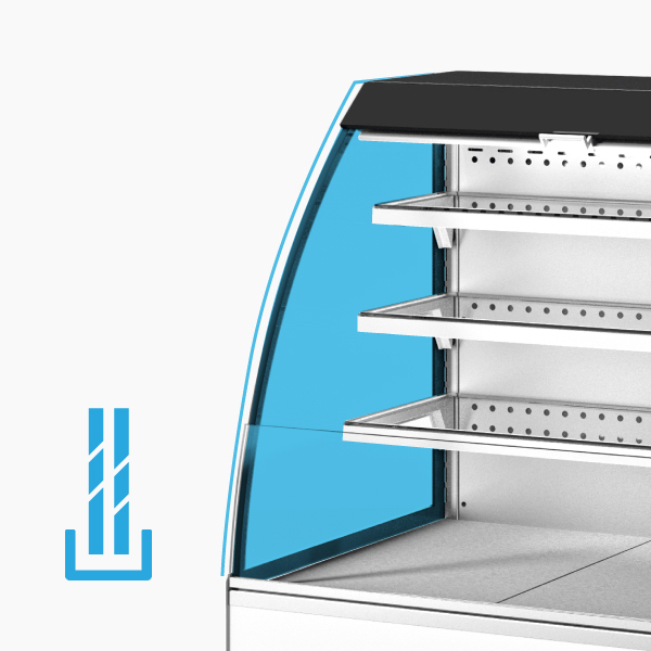 Les joues à double vitrage, qui réduisent la perte de température du présentoir, offrant une visibilité parfaite des produits sous tous les angles.