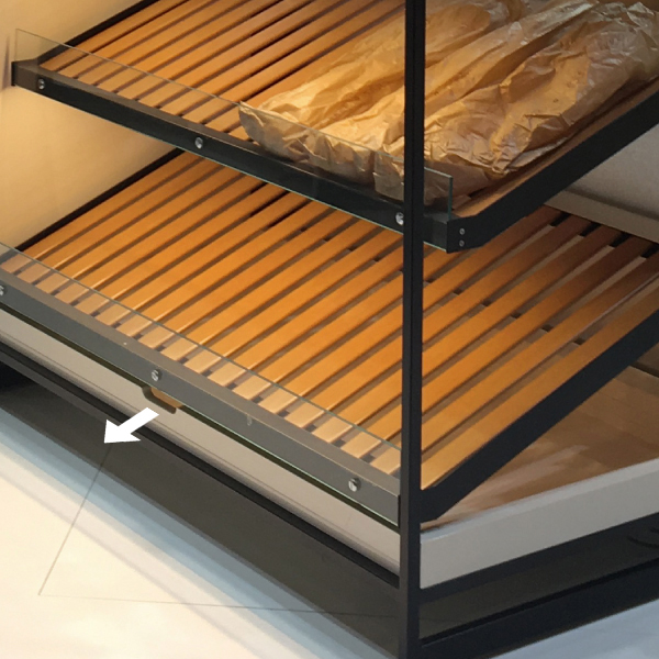 Expositor vertical aquecido para produtos quentes de padaria URBAN. Padaria e pastelaria quente por mais tempo com gavetas que permitem que autosserviço de pão, bolos, croissants, folhados, pretzels… com fácil e rápida reposição dos produtos.