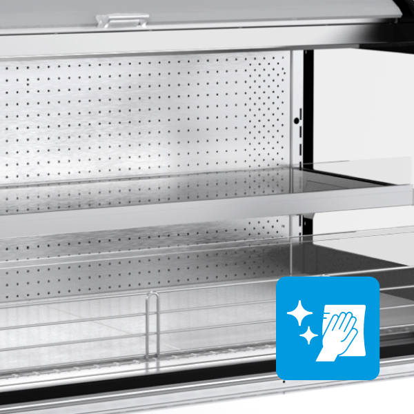 Disponível em modelo com portas de serviço de correr ou pivotantes para rápida reposição dos produtos e opção de portas frontais para maior poupança de energia.