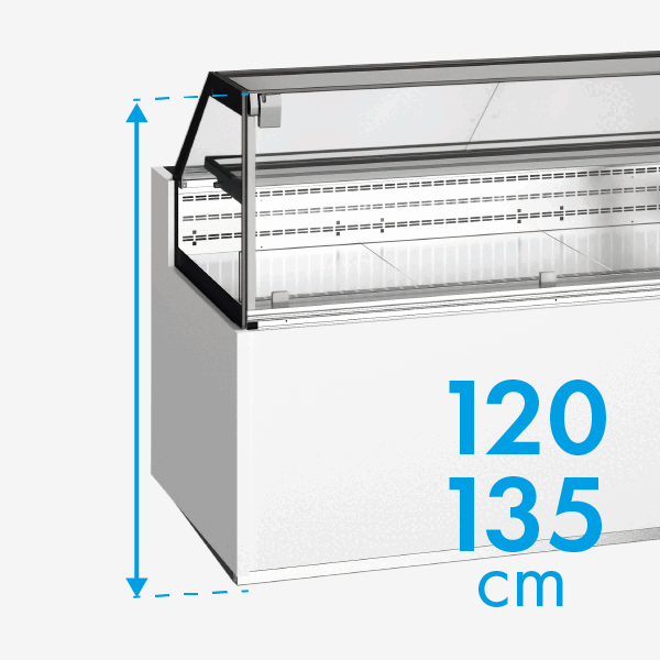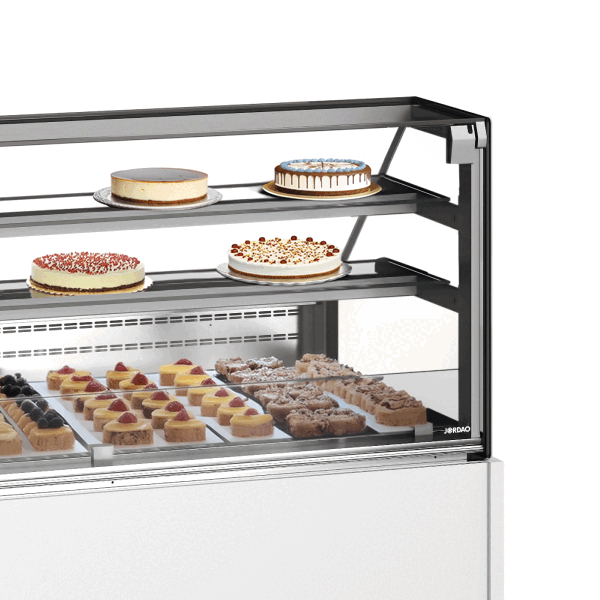 Modelo especialista com refrigeração nas prateleiras, disponível para vitrinas com dois (H=120 cm) ou três níveis de exposição (H=135 cm), permitindo rentabilizar mais o espaço da sua loja. Até +60% exposição refrigerada face ao modelo convencional.